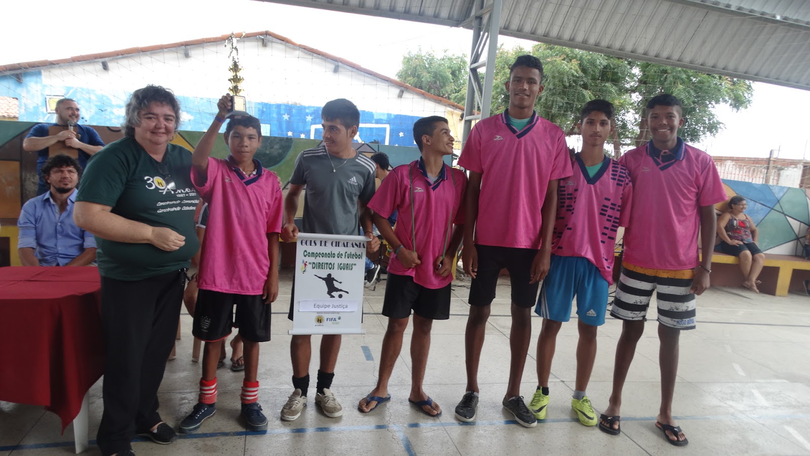 A equipe Organizadora do Campeonato, formada por Crianças e adolescentes do GECI, foi homenageada junto com o Educador Social Hugo.