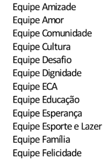 Os times foram formados, a partir das equipes que participam do Projeto Gols de Cidadania, que é Apoiado pelo Programa FIFA Football For Hope. As Equipes seguiram o padrão das formações obtidas nas oficinas sobre Cidadania e escolheram nomes relacionados aos direitos fundamentais.