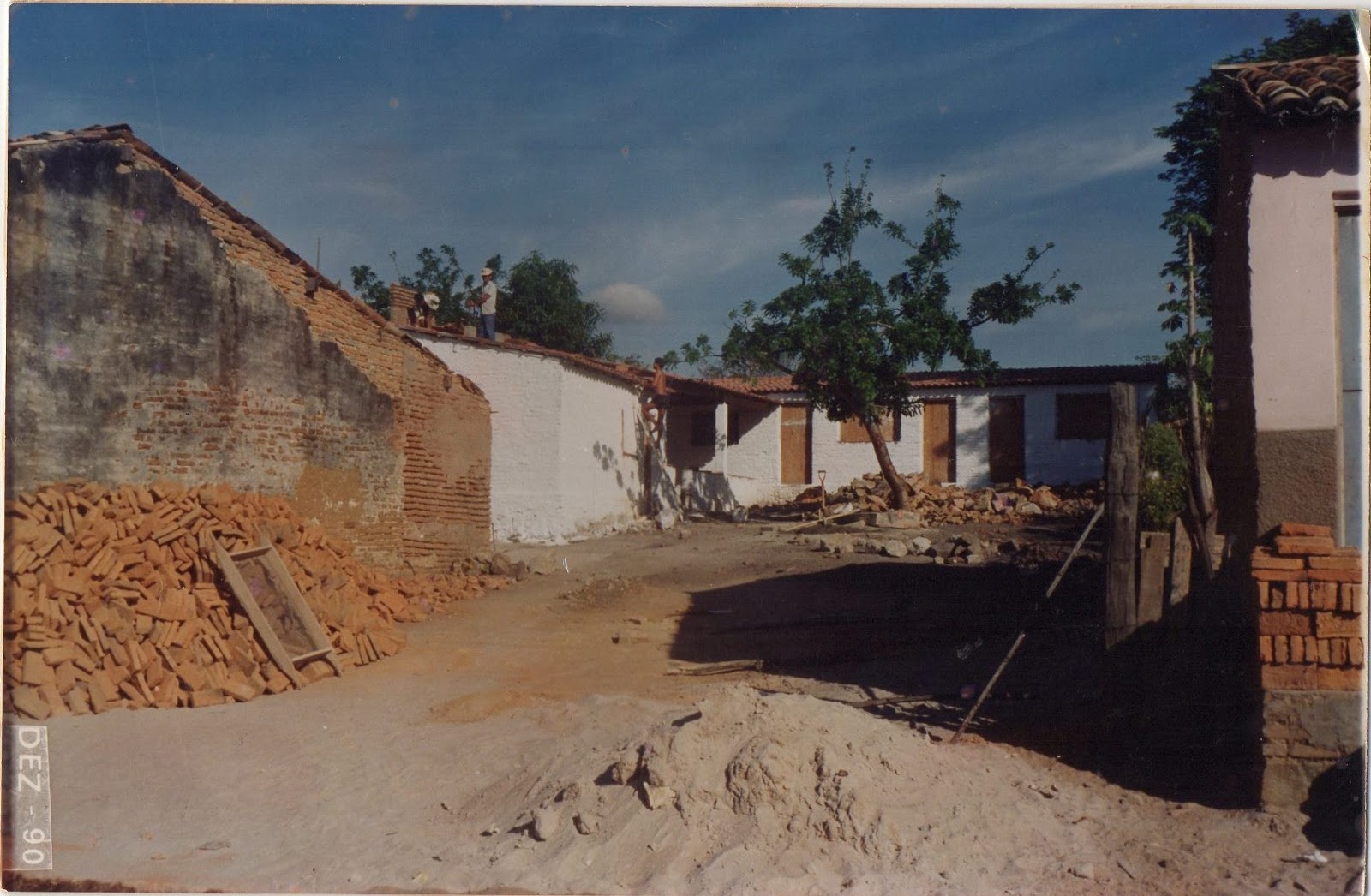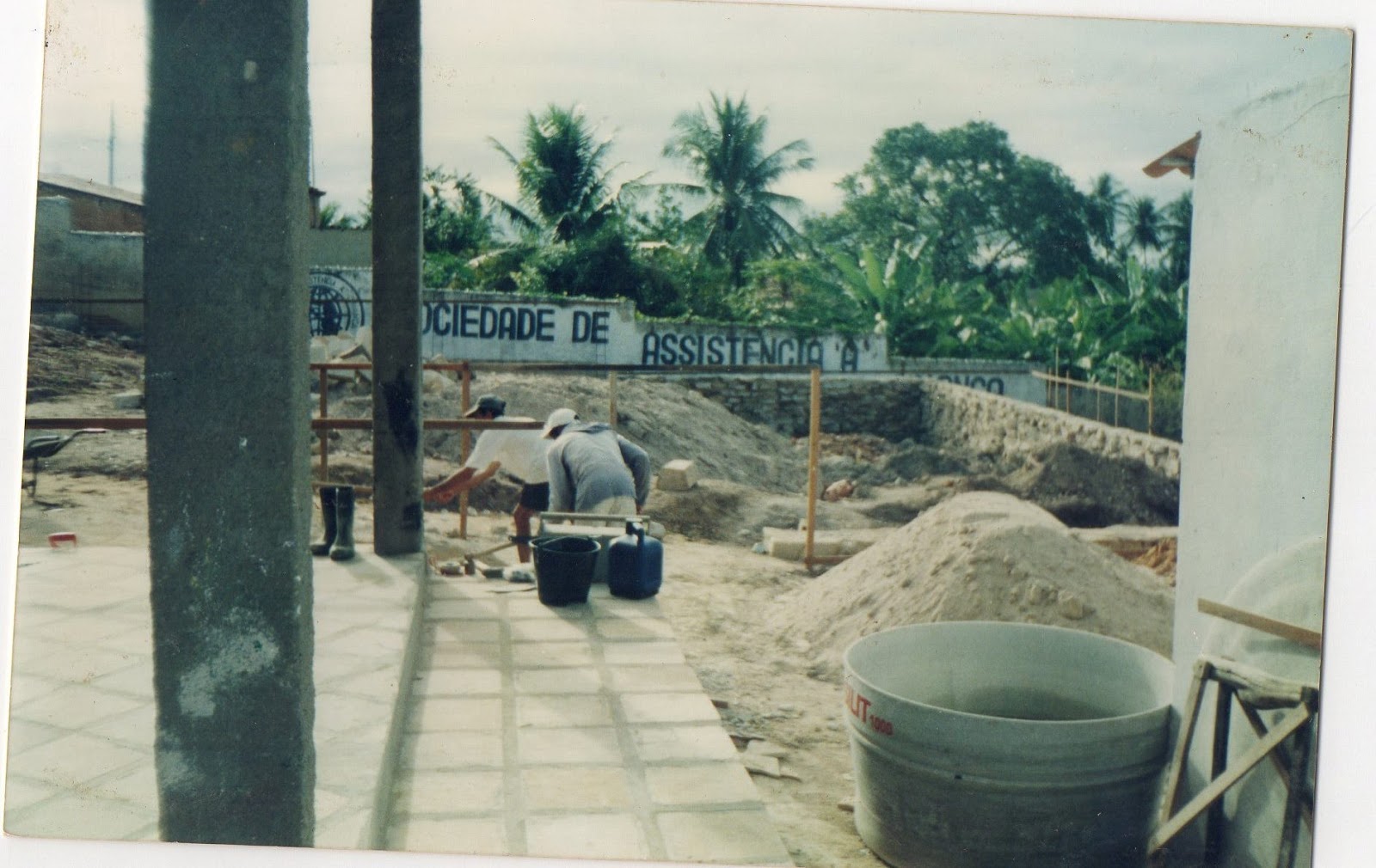 | Fachada antiga do Prédio da SOAF- Ao fundo trabalhadores e a árvore da Seriguela, ainda presente na Organização